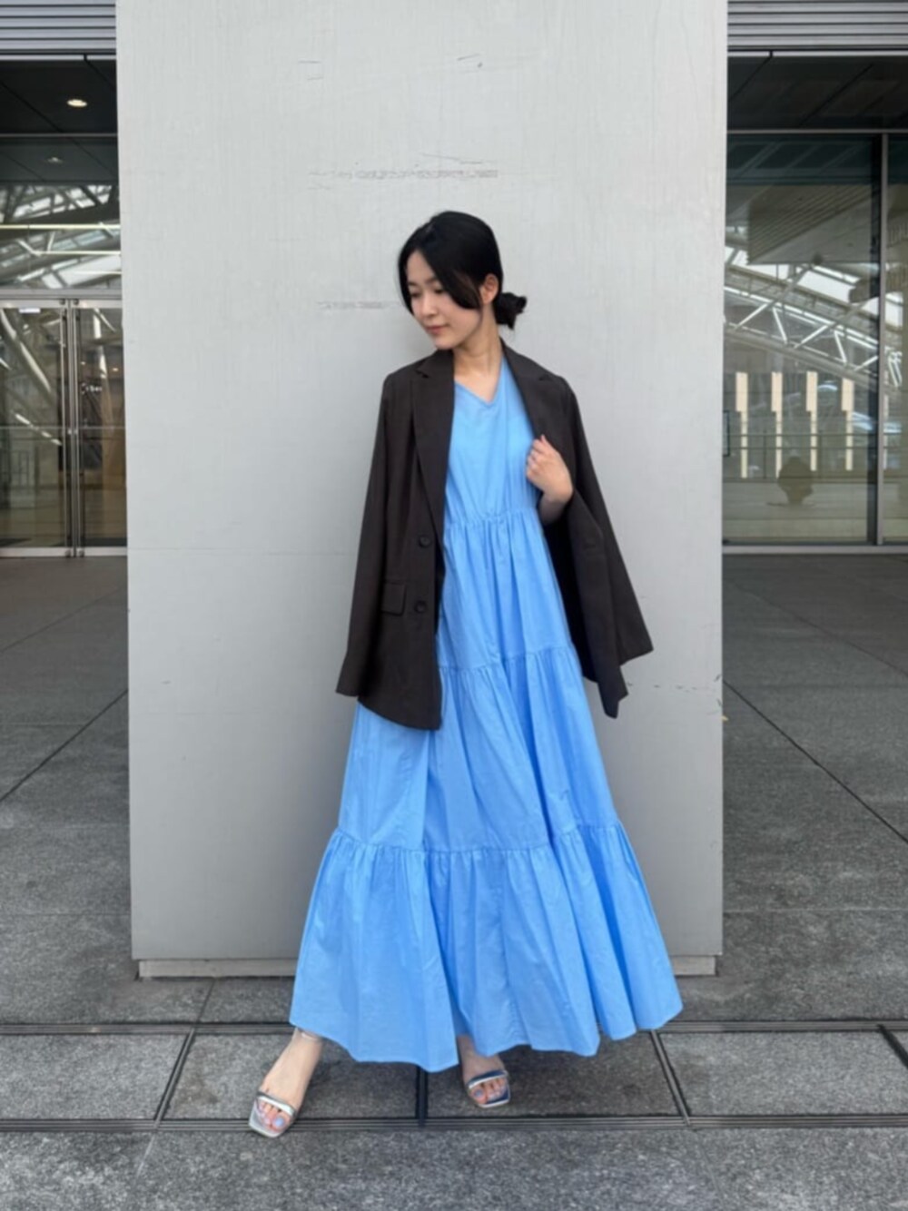 N.定番のダブルジャケットをライトな素材にアップデートしました♩ 軽い薄手素材で冷房や日焼け対策にもなります! 着映えするワンピースも今の時季にピッタリでお出かけにオススメです! ------------------------- 身長:159cm 【普段サイズ】 ・ワンピース:M ・ジャケット:S ・シューズ:23.0/M 【着用サイズ】 ・トップス:M ・ボトムス:M -------------------------