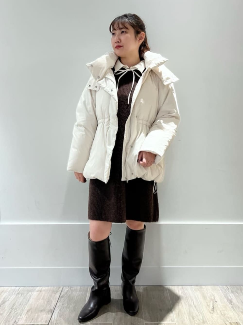 着用コーデ:5件デイリーから通勤まで大活躍なミドルダウン🧡 ウエストや裾がドロストコードで絞れるので、ミニ丈のアイテムで合わせてもバランス良く着ていただけますꕤ⋆.˚ フードは取り外しができます✨ ------------------------- 身長:160cm 【普段サイズ】 ・アウター:M ・トップス:M ・シューズ:24.5/L 【着用サイズ】 ・アウター : S ・トップス:M ・シューズ:24.5/L