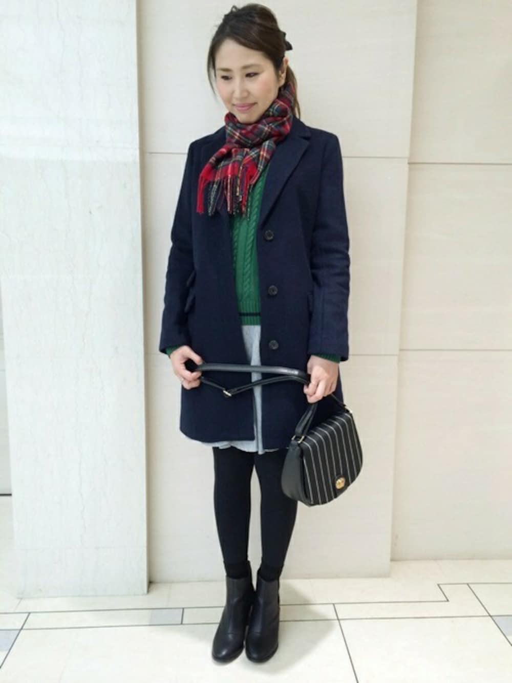 新作のストライプ柄バッグをアクセントにクリスマスカラーコーディネート♪