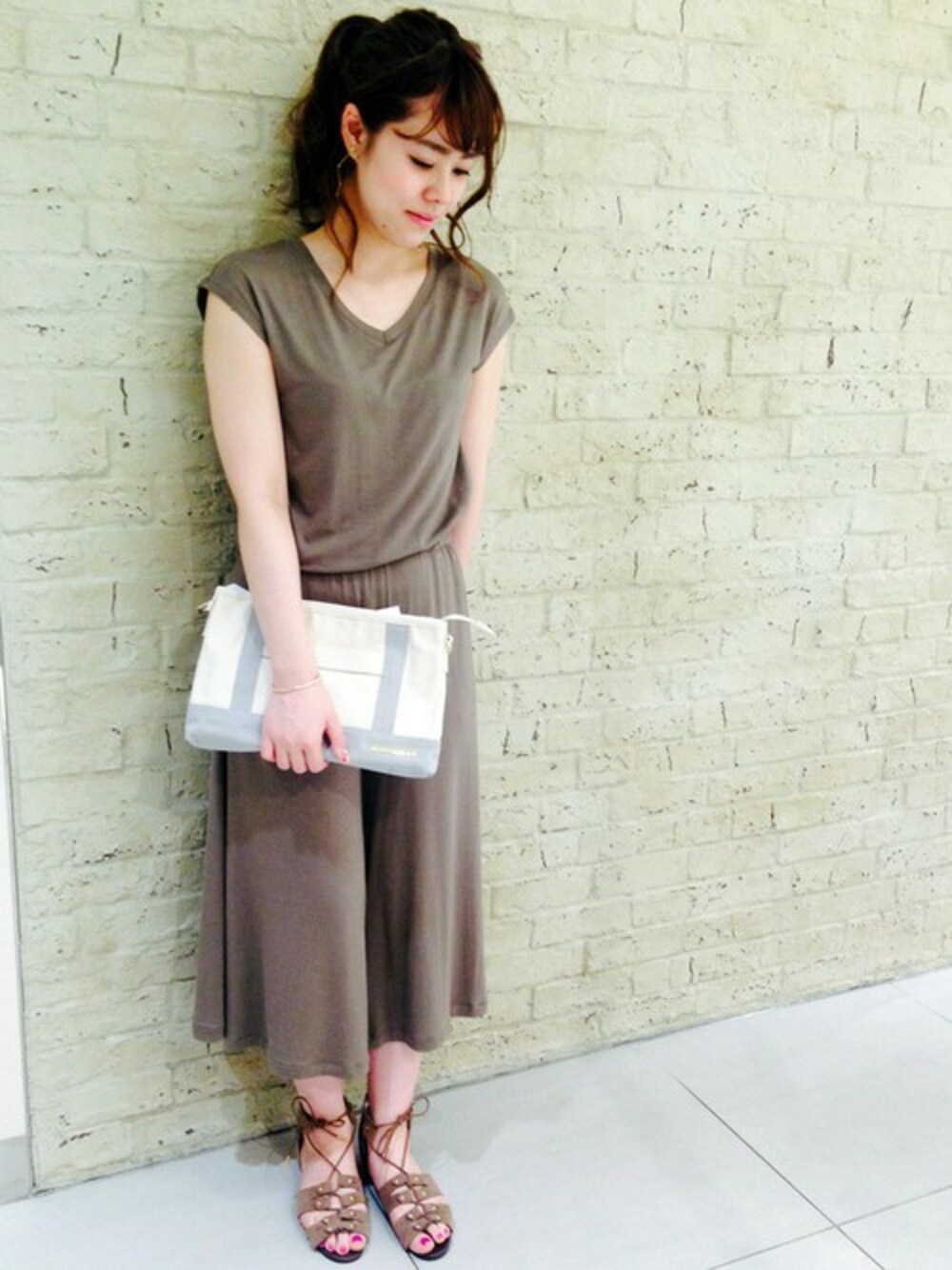 カットソーオールインワンは1枚でラフに! レースアップシューズで足元にアクセントを☆