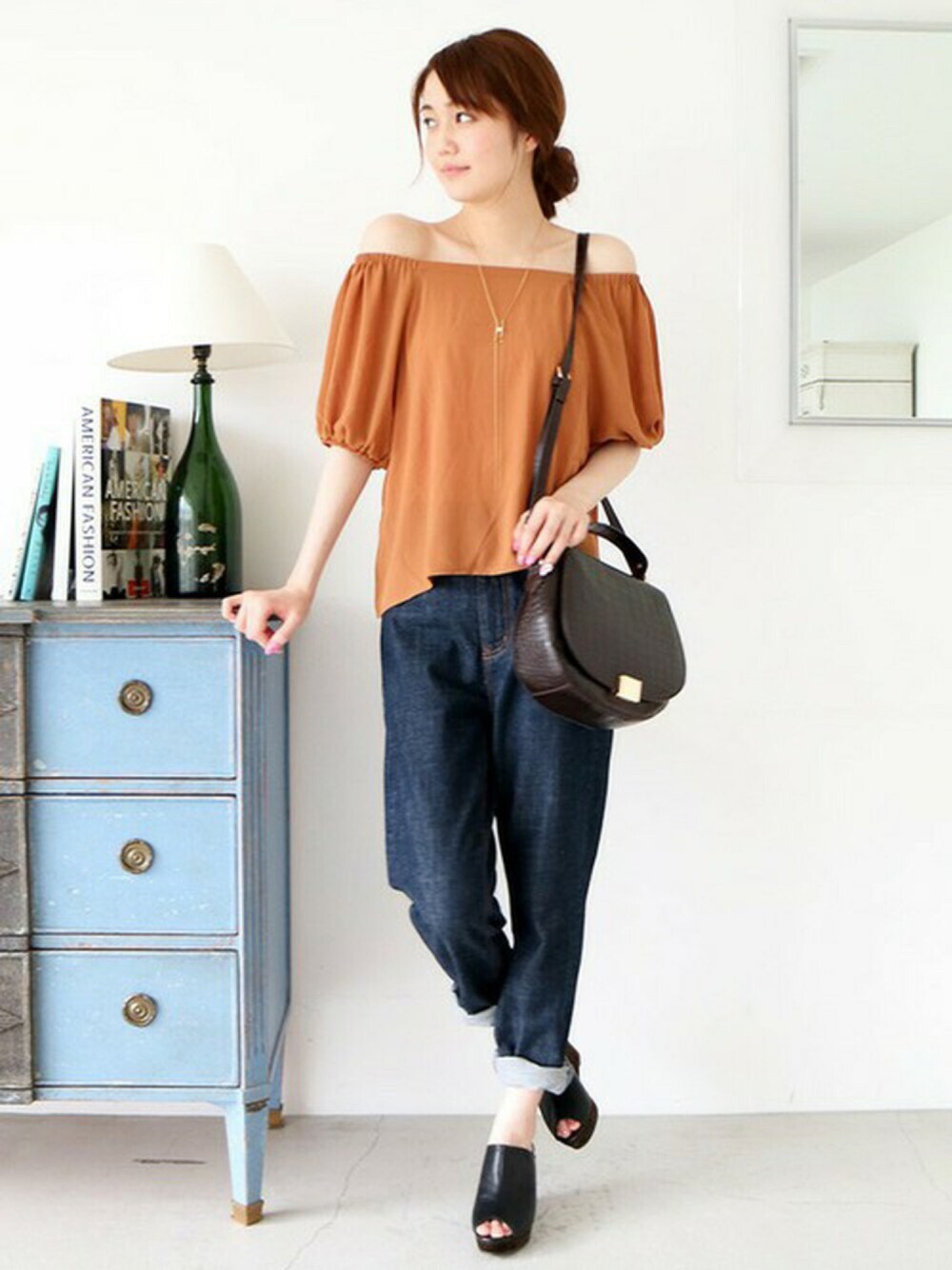 シフォン素材で柔らかい印象になるトップスは デニムと合わせてラフに着るのが今の気分♪