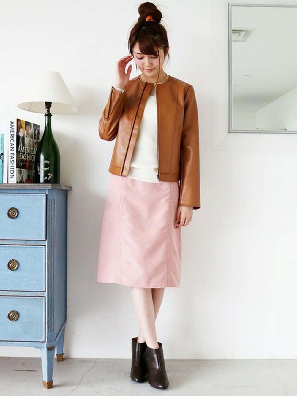 今年のアウターはブラウンが気分♪ ちょうど良い丈感で色んなコーデと相性◎ タイトスカートと合わせてキレイめに!