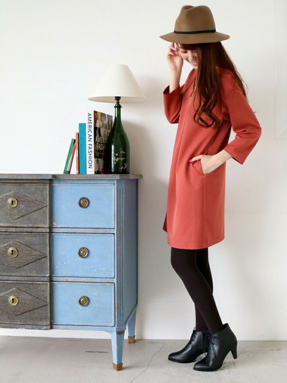 オータムカラーで気分も変わるVネックタックワンピース。 フォルムシルエットでシンプルなデザインが大人見えする1枚です! ストールやアクセサリーで自分らしいコーディネートを♪