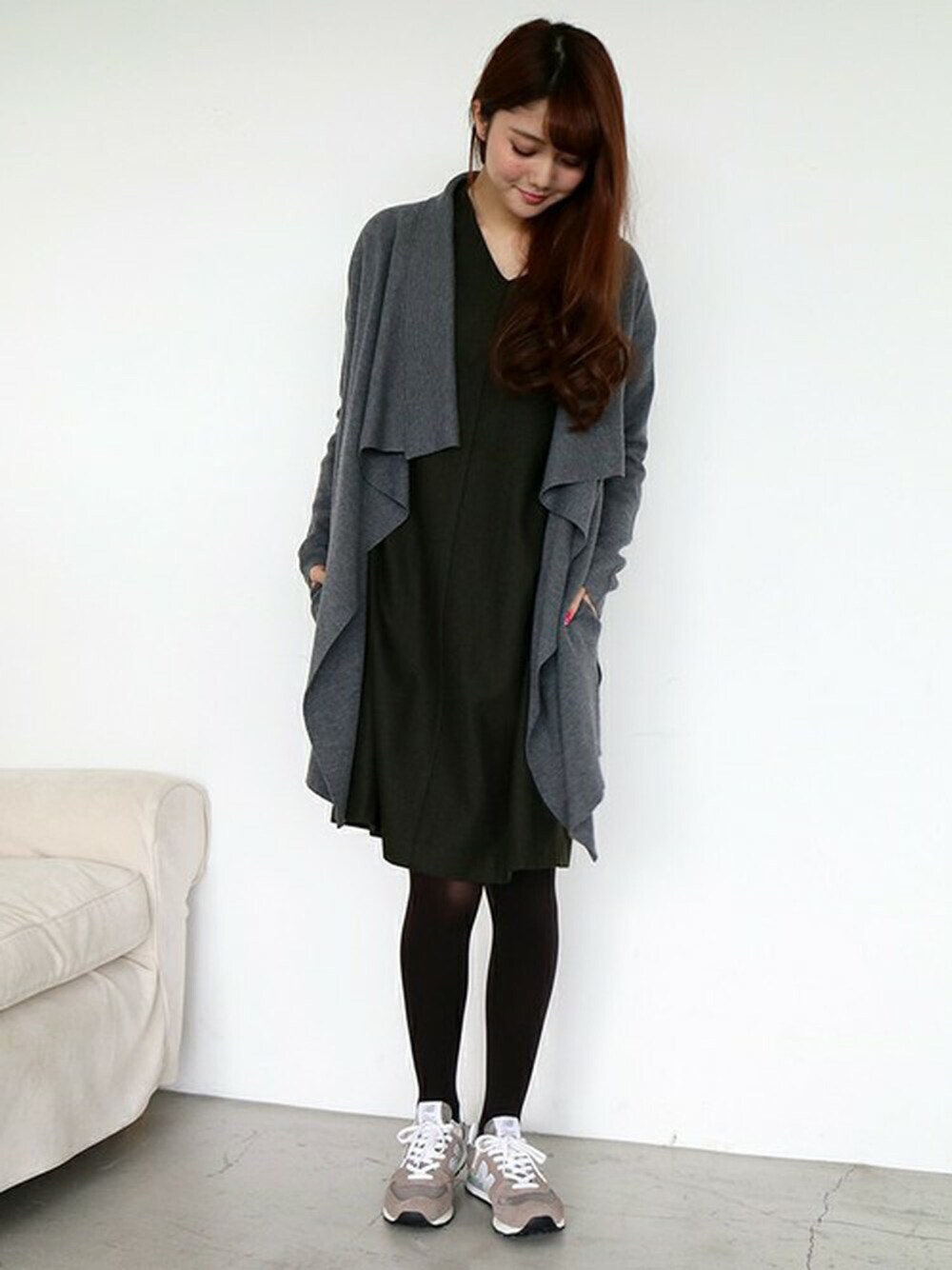 縦に伸びるドレープカーディガンは全体をすっきりと見せてくれますよ♪ 前後差があるので、やぼったくならずに着こなせます。 ★今ならメンバーズ10%OFF開催中!!★