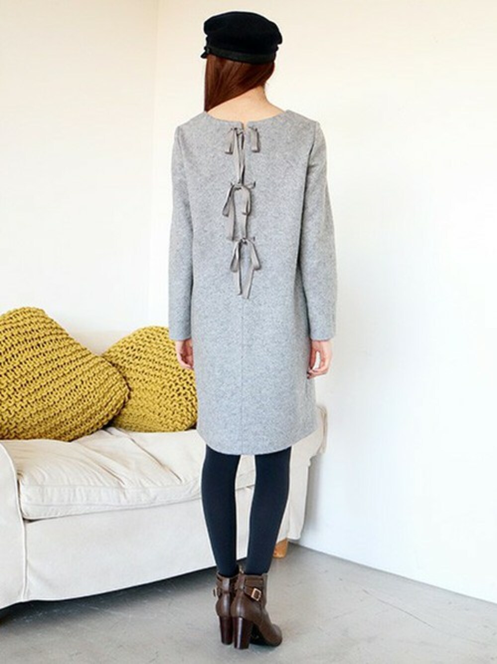 今季注目のリボンモチーフが施されたワンピース。 アウターを脱いだ時、後ろ姿も可愛く見せてくれます♪ さらっと着れてラクちんなのもポイント!