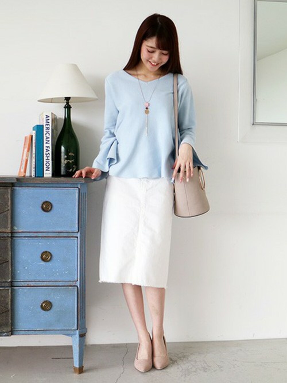 裾や袖のフレアが女性らしさをUPさせるトップスは前後どちらでも着れるのでその日の気分でどうぞ♪
