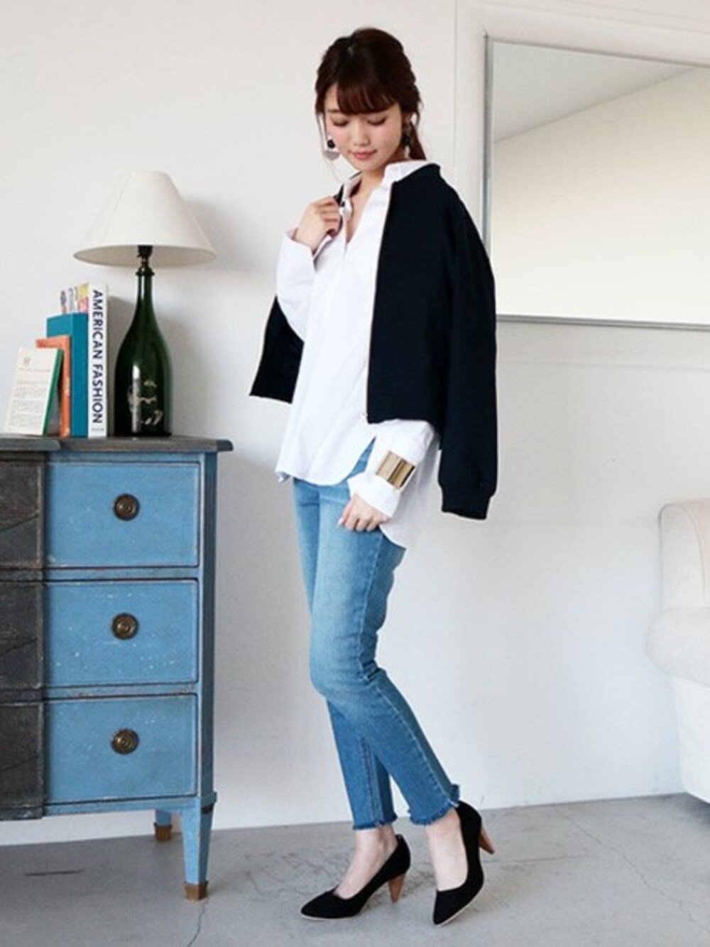 ビッグサイズのシャツブラウスは、ざっくり着てラフに着こなしたい♪ ツイルMA-1で今年らしさを取り入れたコーディネート。