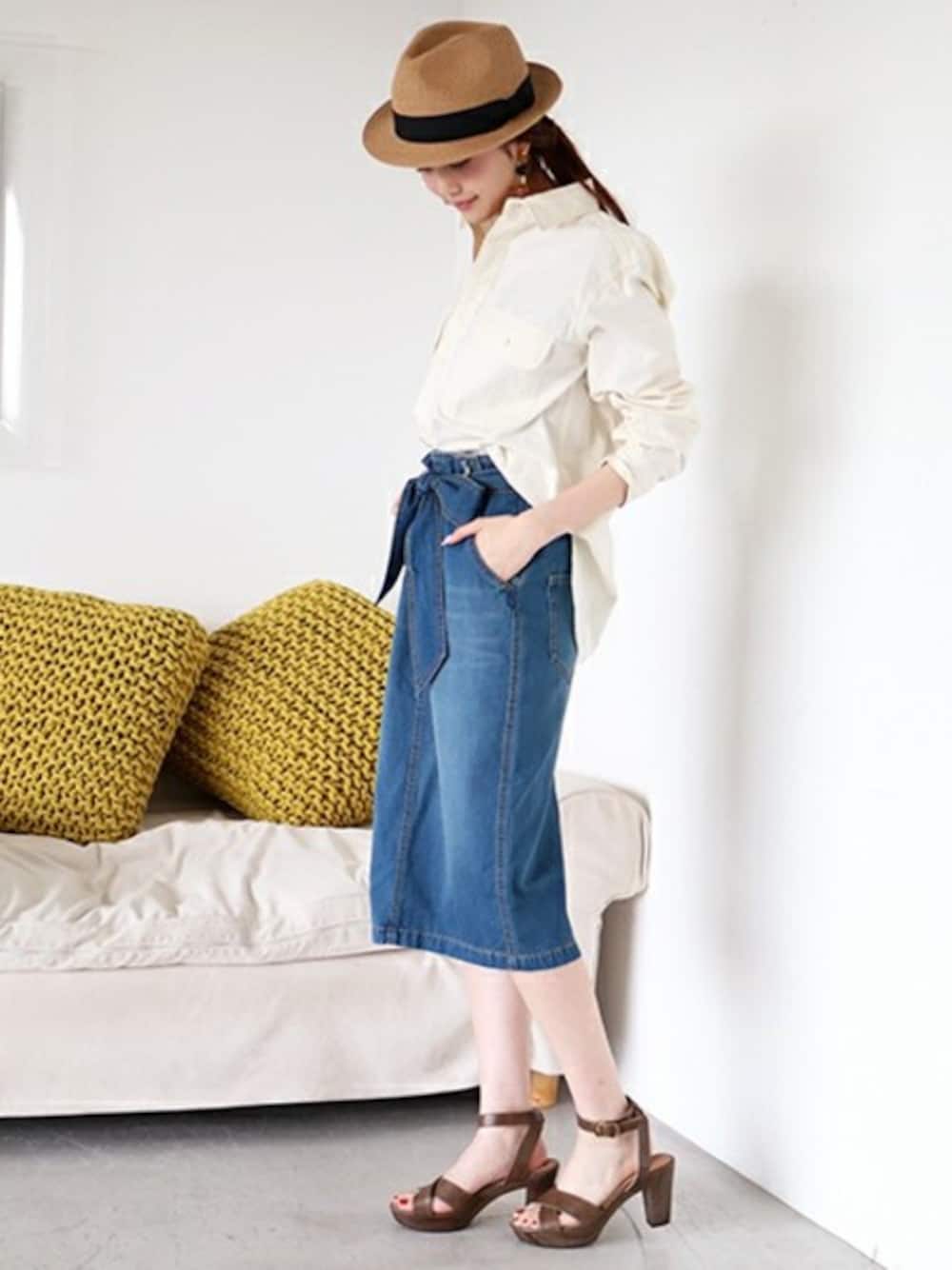 N. STAFF(N. Natural Beauty Basic* OFFICE)のデニムスカート「【Ray4月号掲載】【追加生産】ベルト付きデニムタイトスカート」を使ったコーディネート