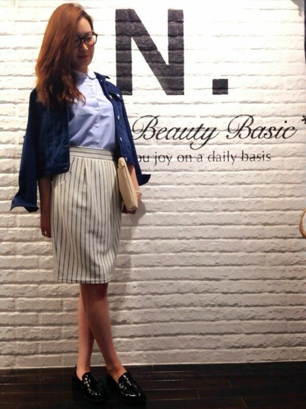 ストライプスカートを主役に大人カジュアルスタイルのご提案★ いつものスタイルにトレンドのGジャンやローファーを合わせるだけで、どこかこなれた印象に。