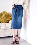 人気継続中のデニムタイトスカート!大きなリボンとミモレ丈で、デニムでもレディライクなコーディネートができます♪ ストレッチがかなりあってタイトスカートでも動きやすいのもポイント★ ★ZOZOTOWN \2,000クーポン配布中!!4/15 23:59まで★