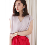 しなやかな風合いで品よく仕上げてくれるタックドレープブラウス。 少しピンクがかったグレーが大人の女性らしさを演出★ フレアスカートと合わせてきれいめ大人styleに♪