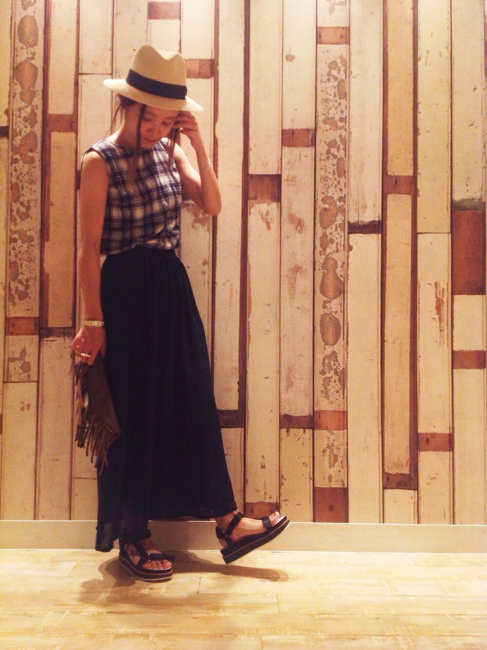 SHIGAのシャツ/ブラウス「【7/14OT返品】コットンチェックノースリブラウス」を使ったコーディネート