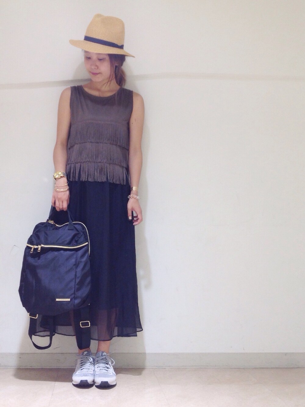 SHIGAのタンクトップ「ティアードフリンジタンクトップ」を使ったコーディネート