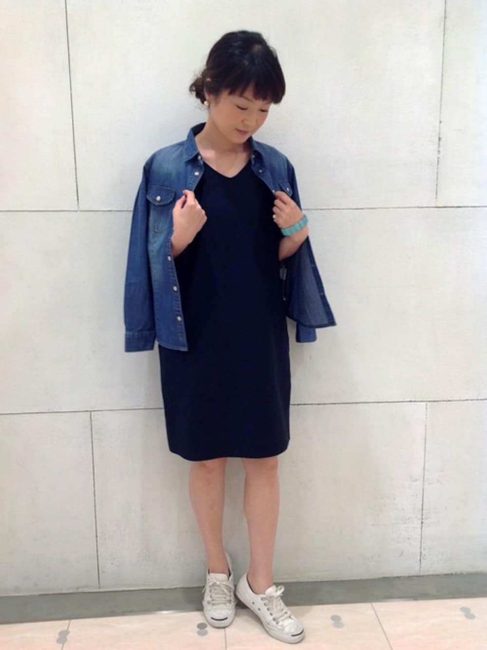 夏ワンピを大人カジュアルに❗️ デニムシャツは巻いてもいいですよね😍 パンプスだとお呼ばれでもOKな、活躍OPです‼️