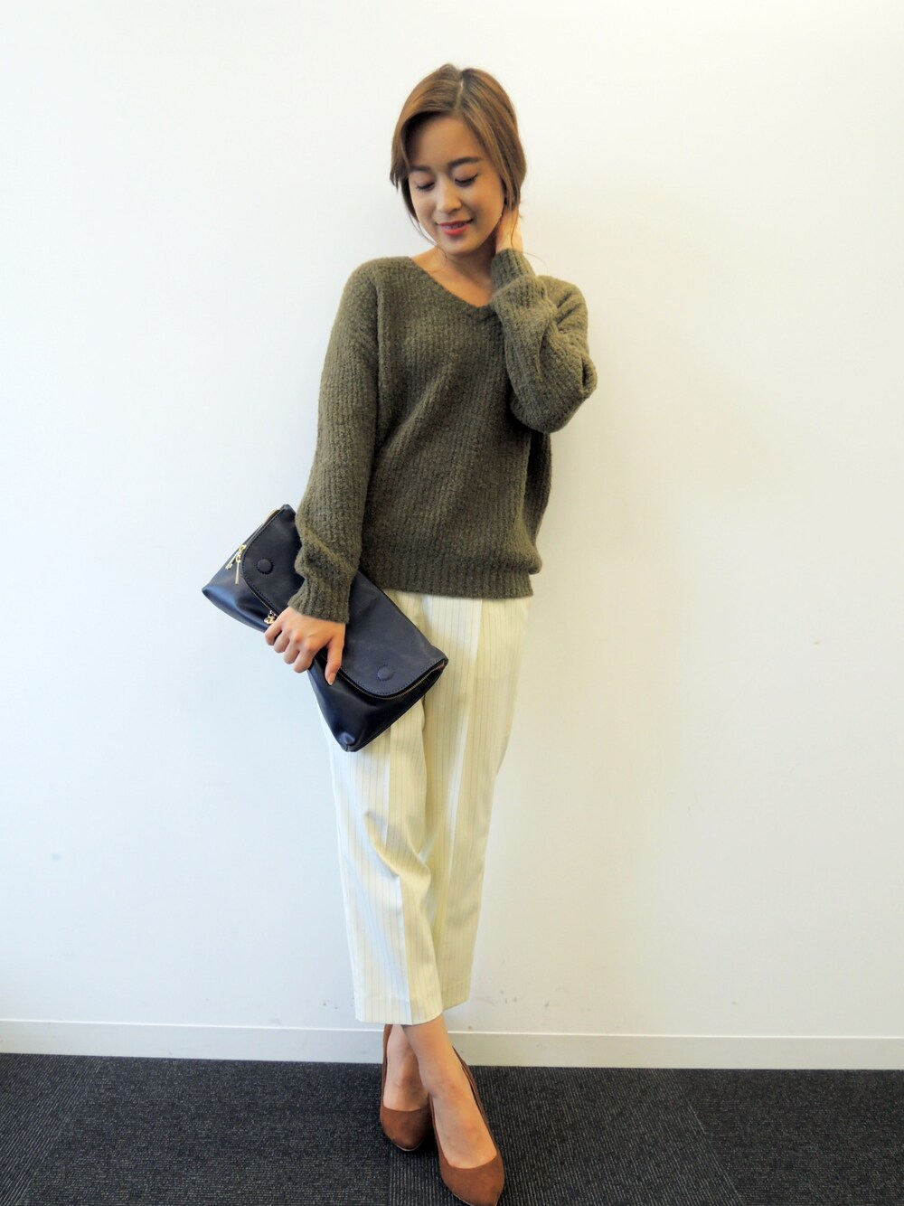 カーキを白合わせで大人っぽくシンプルに。 カジュアル見えしないカーキコーデも秋にはピッタリ♪