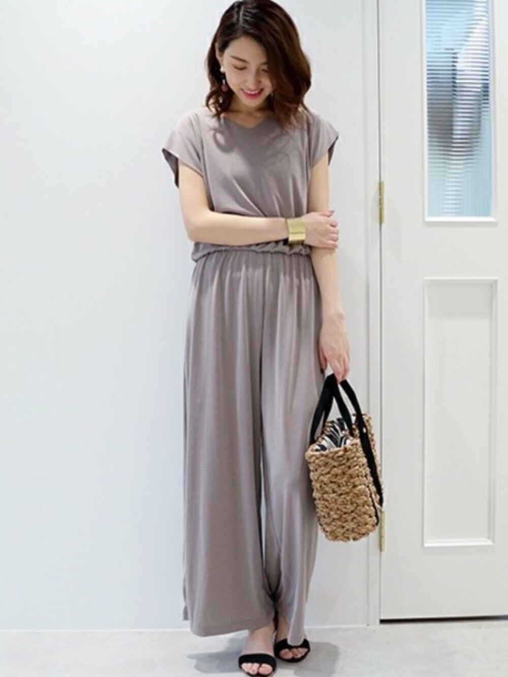 サンドウォッシュオールインワンは落ち感のある柔らかな風合いで大人っぽく仕上げてくれます☆ 縦長ラインでスタイルアップ効果もありますよ♪