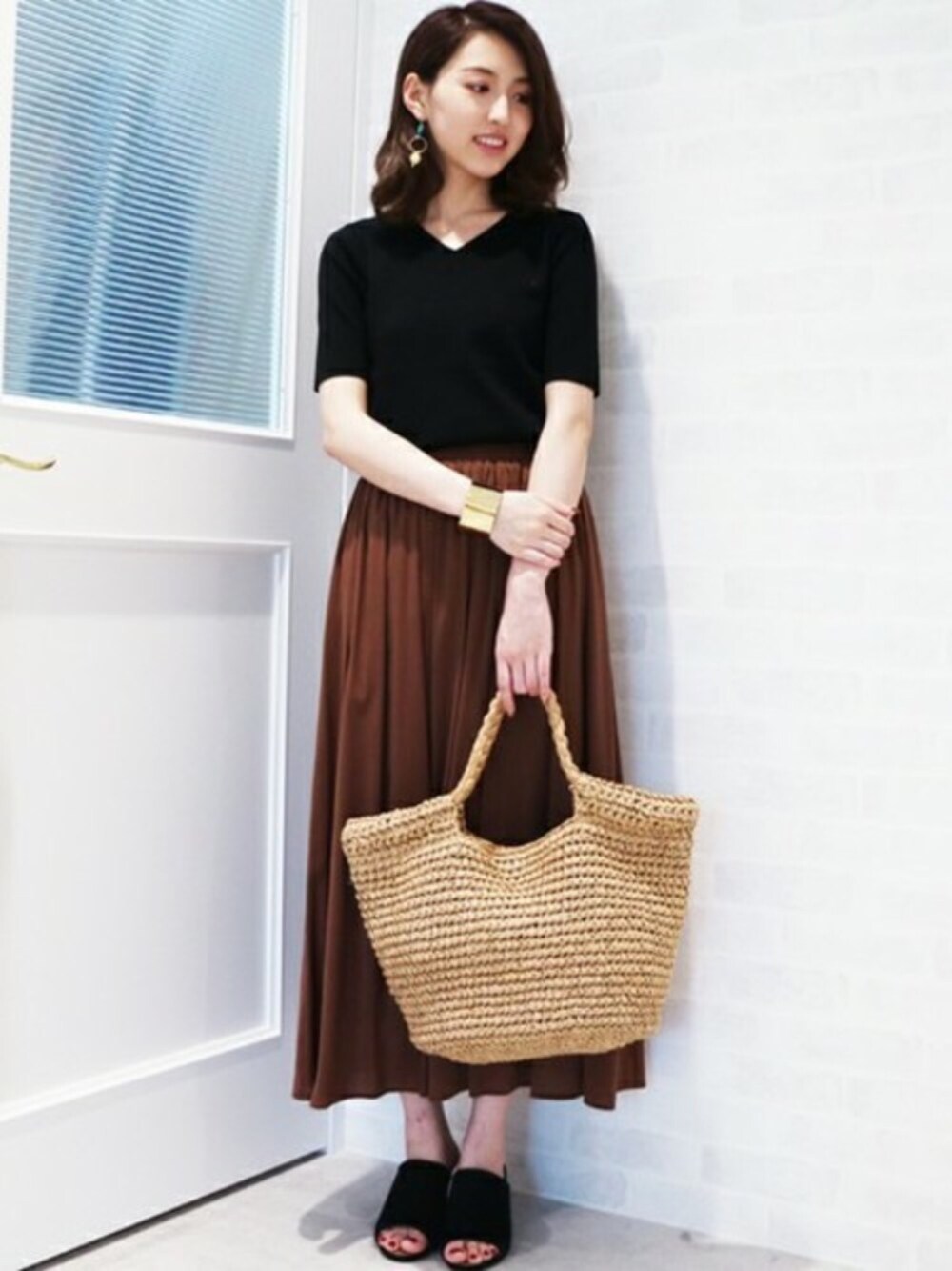 S.のスカート「カラーミモレスカート」を使ったコーディネート