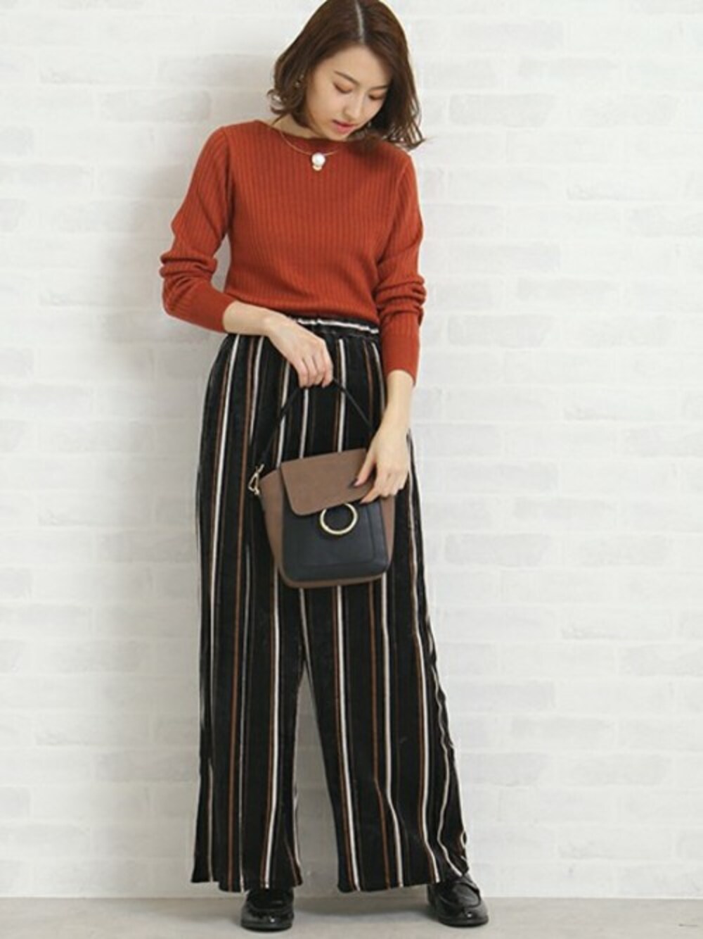 S.のニット/セーター「ウールシルクリブボートネックニット」を使ったコーディネート