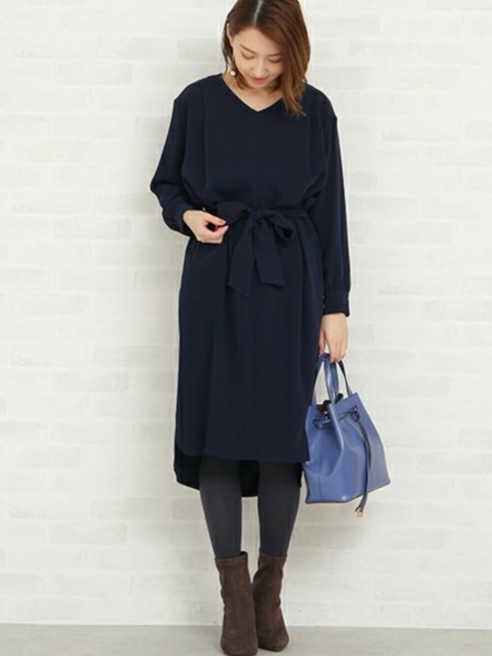 ダブルクロスタックワンピースはすっきりしたVネックラインで上品に仕上げてくれるアイテムです☆ ベルトは付け外し可能になっています!