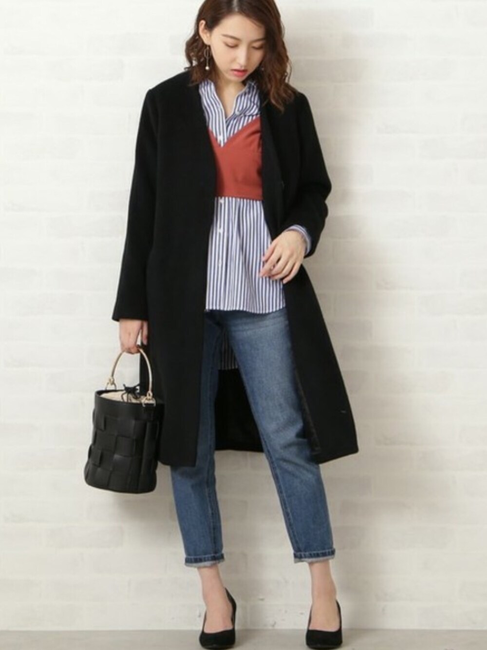 S.のチェスターコート「◆アンゴラビーバーノーカラーコート」を使ったコーディネート