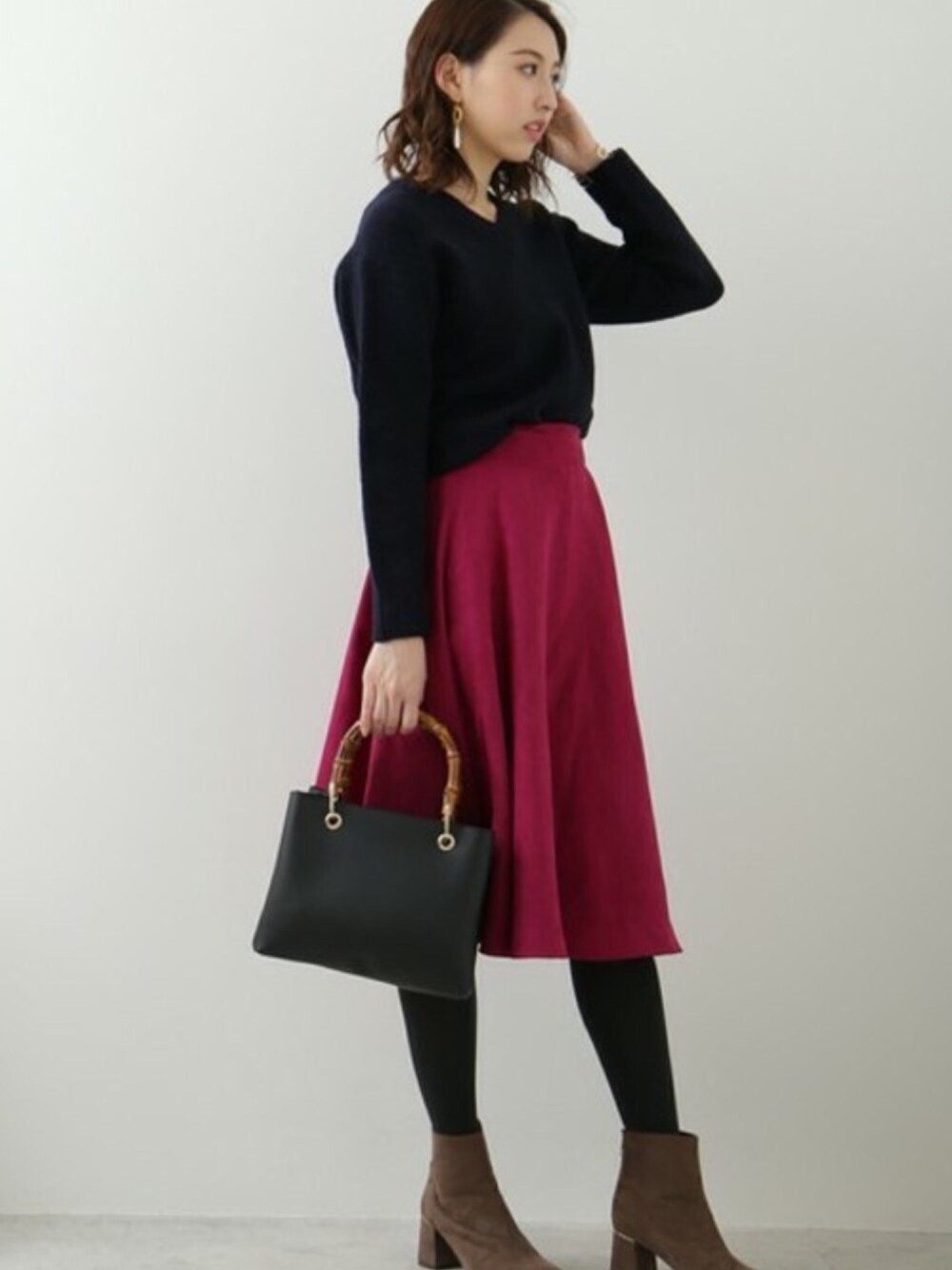 S.のスカート「フェイクスウェードフレアミモレスカート」を使ったコーディネート