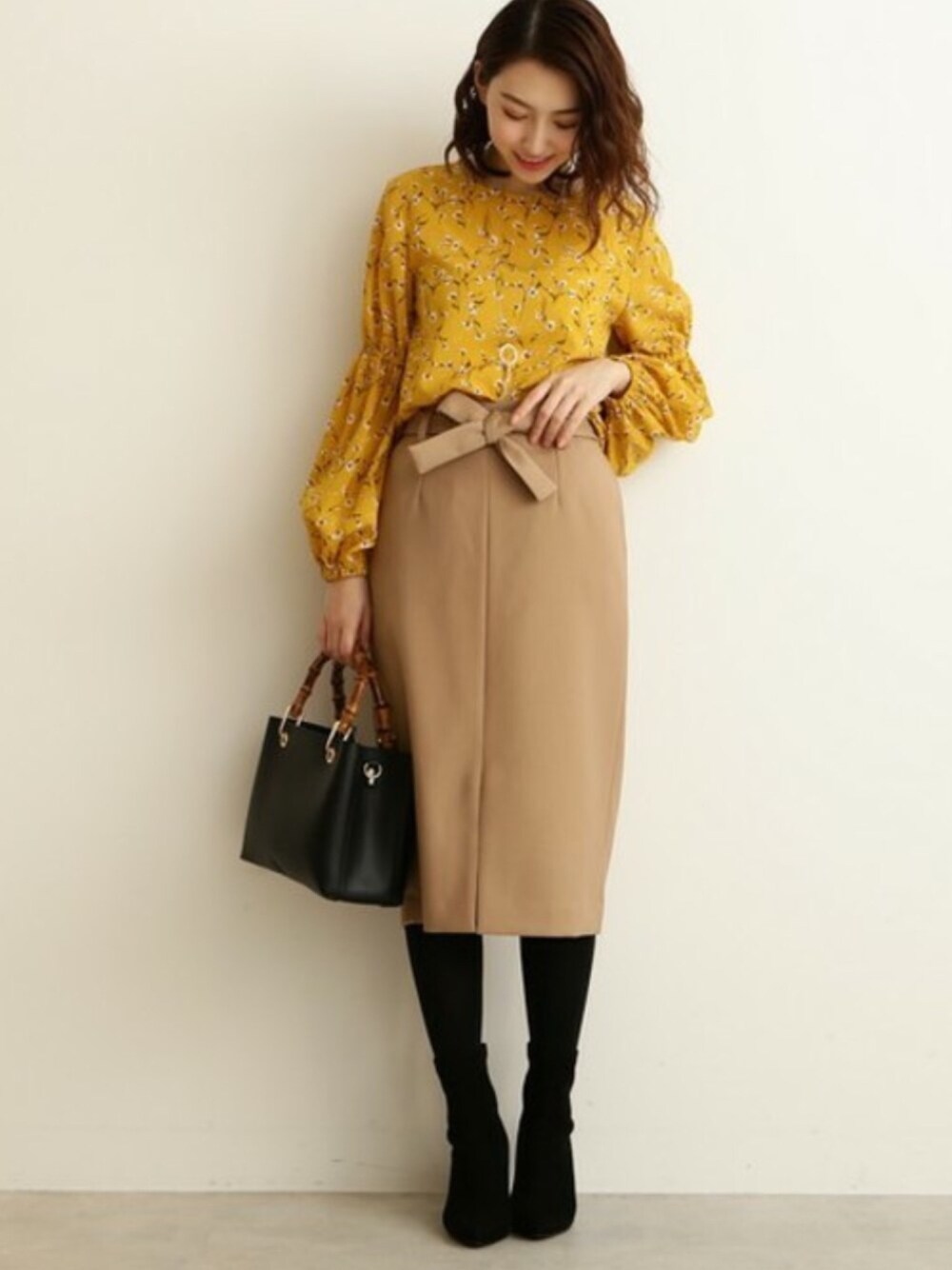 トップスのティアードスリーブブラウスは花柄が可愛らしいアイテムです☆ 春先にぴったりのカラーになっていますよ!