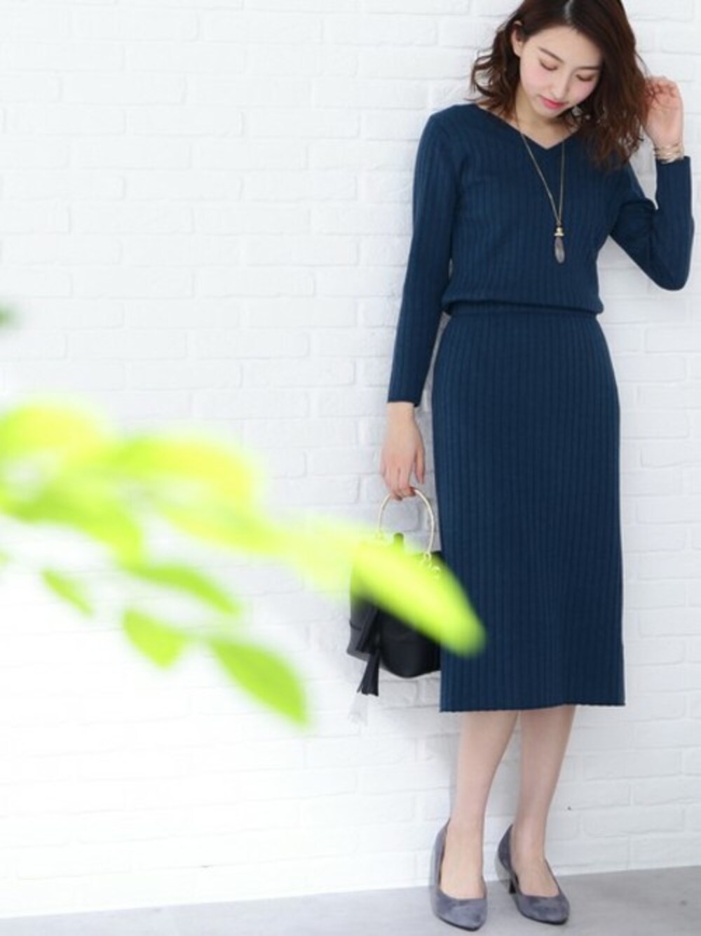S.のワンピース「ワイドリブニットワンピース」を使ったコーディネート