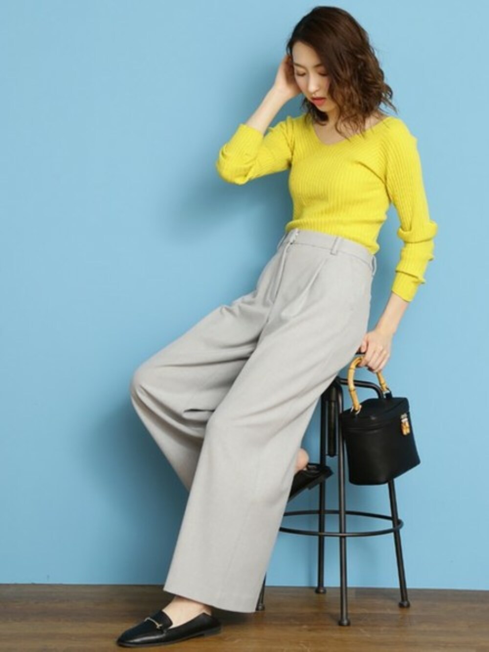 S.のニット/セーター「デコルテリブニット」を使ったコーディネート