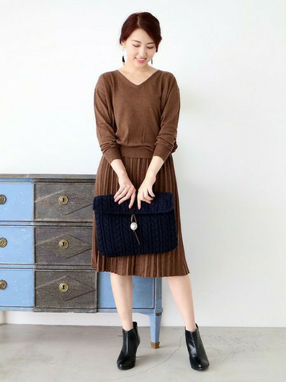 夏の終わりごろから秋まで着れるニットセットアップ♪ トップスは袖や裾がリブ編みになっているベーシックなデザインで、スカートは細めのプリーツに長めな着丈で大人カジュアル感が出ますよ! セットアップとしてはもちろん!単品でもコーディネートを楽しむことが出来ますよ☆