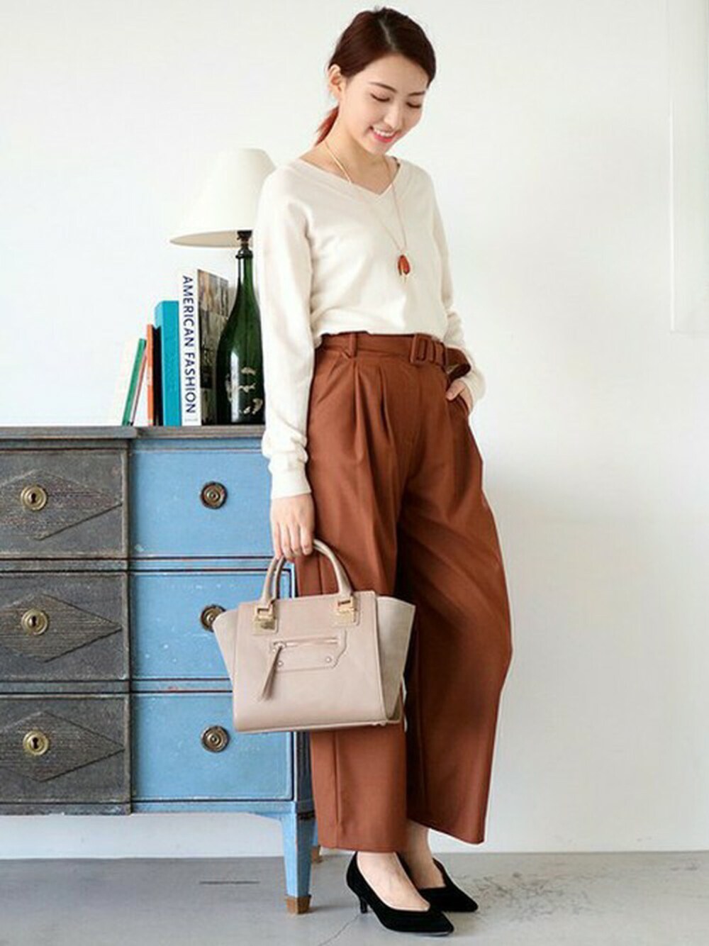 S.のニット/セーター「ウールテンセルVネックニット(ドルマンスリーブ)」を使ったコーディネート