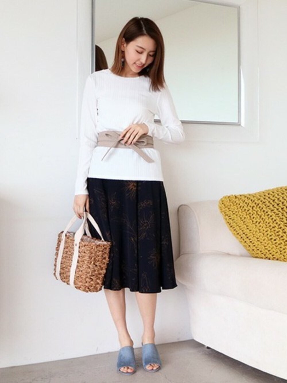 トップスのクルーネックリブプルオーバーはボディに沿った女性らしいシルエットでスッキリ着こなせますよ☆ シンプルなデザインでどんなボトムとも合わせやすいです!