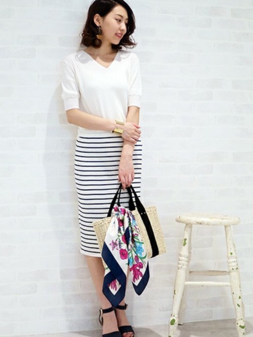 S.のニット/セーター「ワイドリブ5分袖ニット」を使ったコーディネート