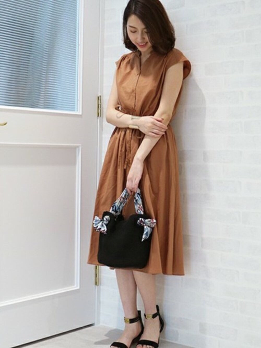 S.のワンピース「コットンローンミモレノースリーブワンピース」を使ったコーディネート