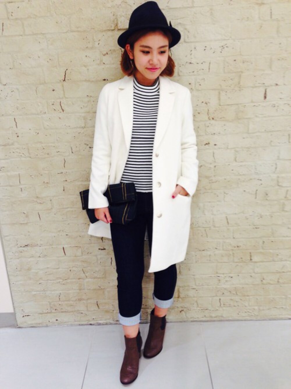 minori*のチェスターコート「アンゴラビーバーチェスターコート」を使ったコーディネート