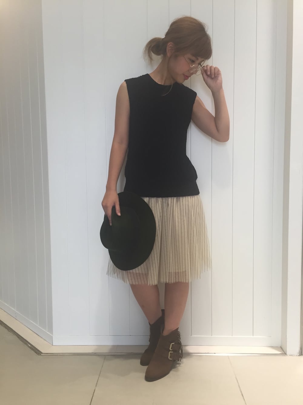 こんにちは🌞 秋意識のコーディネートは いかがでしょうか😋✨ チュールのスカートは ウエストゴムで履きやすいですよ☝🏻️