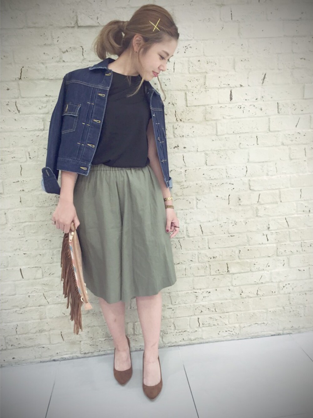 minori*のクラッチバッグ「フリンジ2WAYクラッチ」を使ったコーディネート