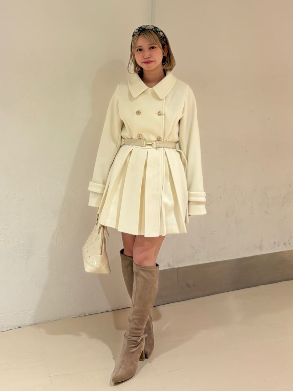 nonko 【骨スト】(one after another NICE CLAUP)のその他アウター「フェイクファー襟プリーツミドルコート」を使ったコーディネート