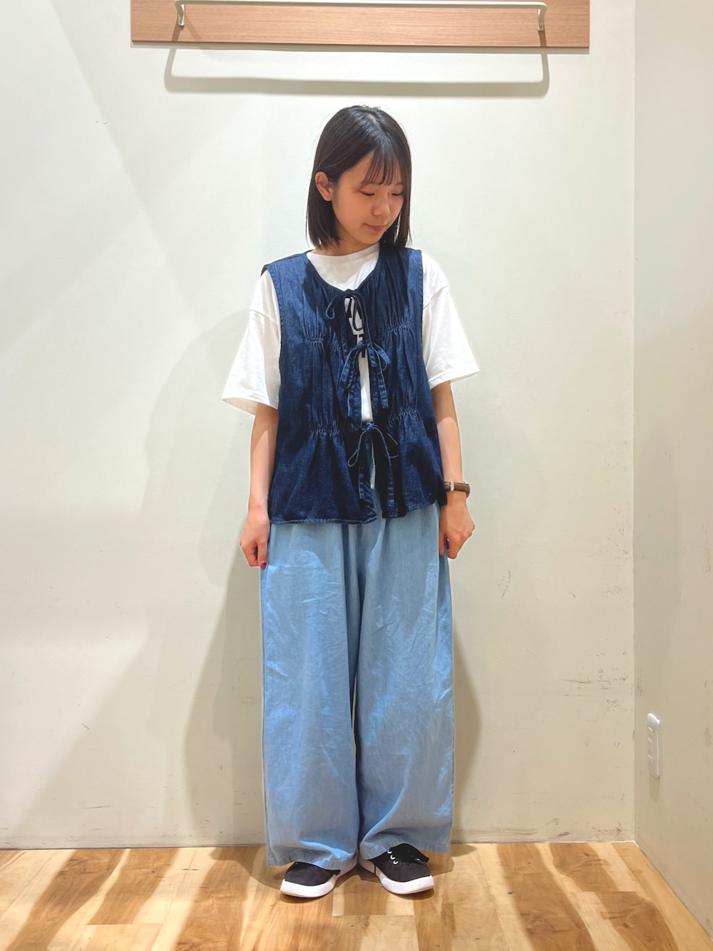 こんにちは◎ リボンデニムのベストとインド綿のデニムを合わせてみました。 パンツは柔らかい素材で、かなり涼しいです! 真夏にぴったりです☀️ ベストはリボンとギャザーが可愛く、 一目惚れして毎日着ています☺️ ロゴTはふわっとした素材感が気持ちよく、 着心地◎。 思ったよりもオーバーサイズでした✨ ご覧いただきありがとうございました🪻