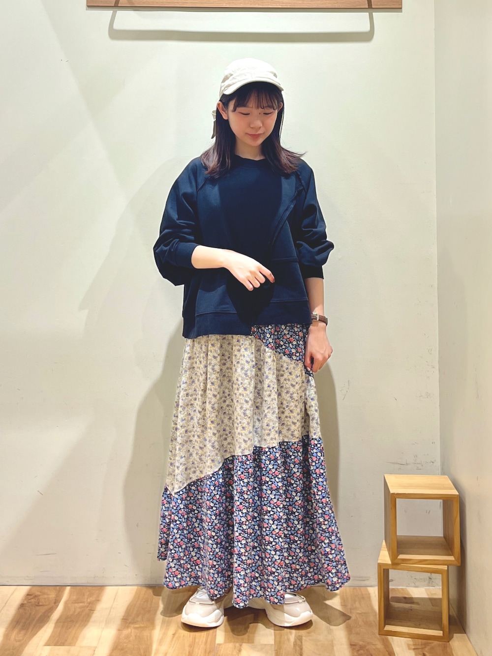 花柄スカートを使ったカジュアルコーデです♪ スカートはパッチワークでオシャレ感up♡ トップスに何を合わせても様になります✨ 1枚持っておくとコーディネートが楽に なりそうです♪ 丈が短めのスウェットに合わせてみました◎ こちらもシンプルすぎずでオススメです✨