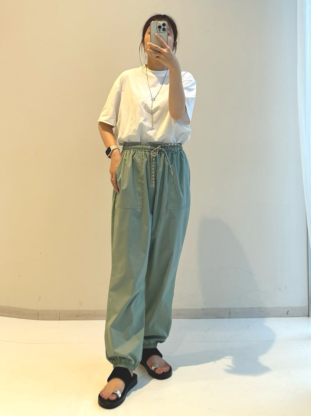 オシャレ着として、スポーツウェアとして この夏おすすめのジョガーパンツです! 水陸両用素材なので海やプールにも履いて行けちゃう! 爽やかなブルーが涼しげで可愛い♡ 夏にサラっと着たいので無難な白Tを合わせてみました。 身長:154cm 骨格:ストレート 着用:Mサイズ