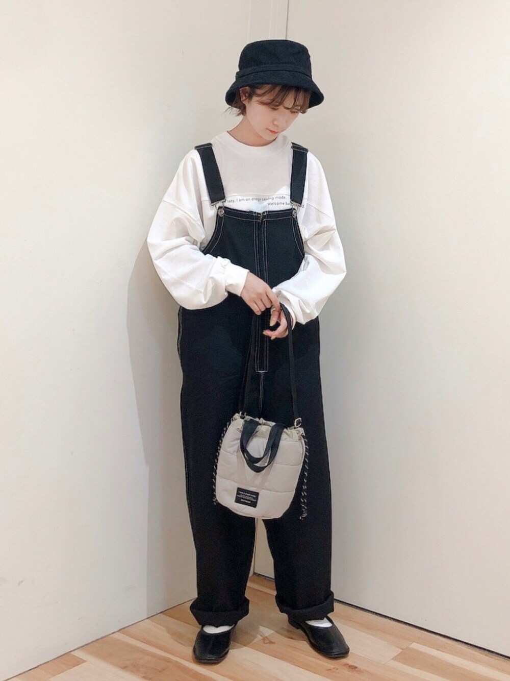 いつもご覧いただきありがとうございます! カジュアルなブラックコーデ🖤 小物やインナーで白を取り入れるもの重たくなりすぎず、ラフに着られます♪ バッグは似てるもののタグを紐付け付けしてます🏷