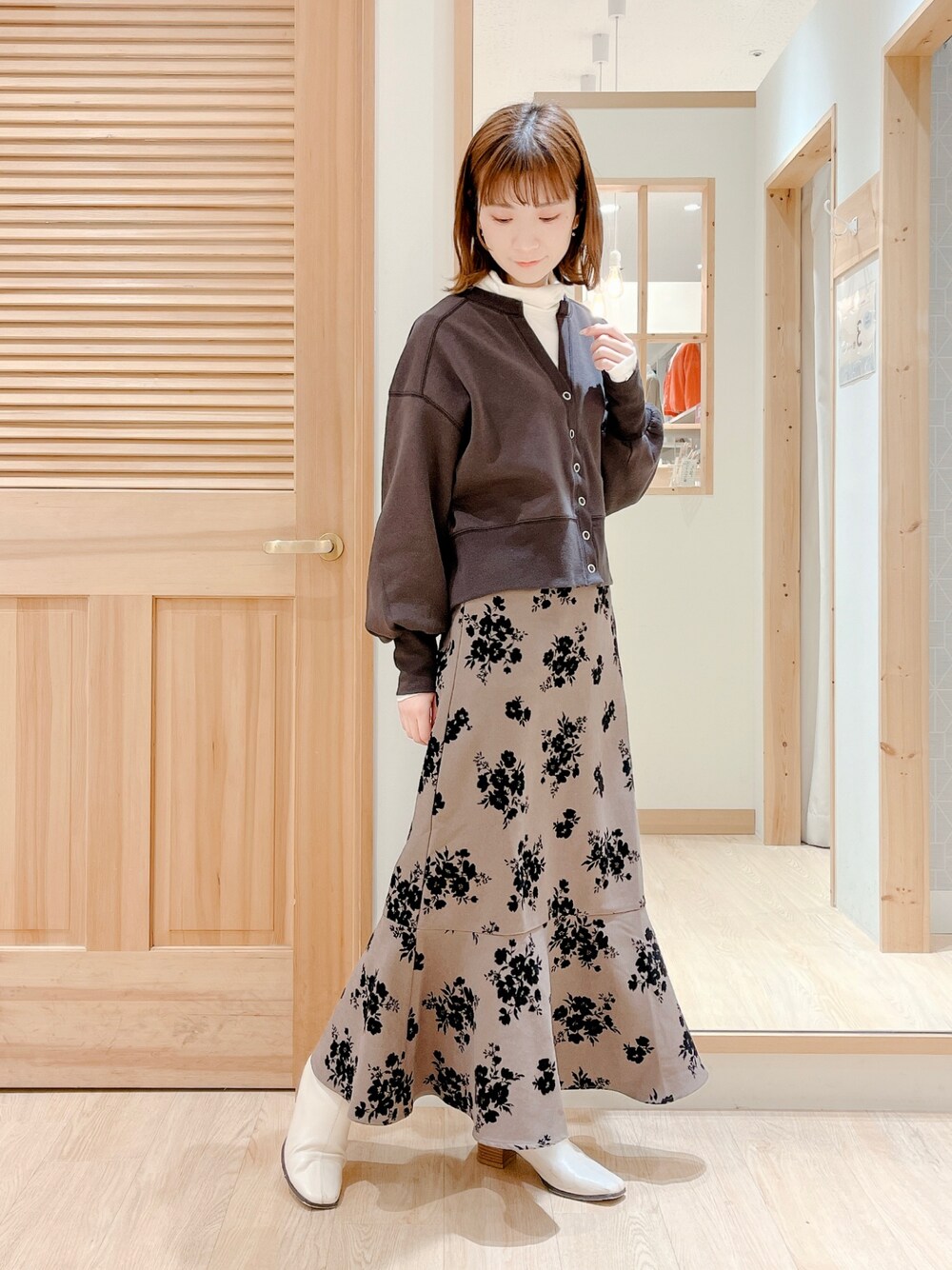 みやもとなのこのスカート「フロッキー花柄スカート」を使ったコーディネート
