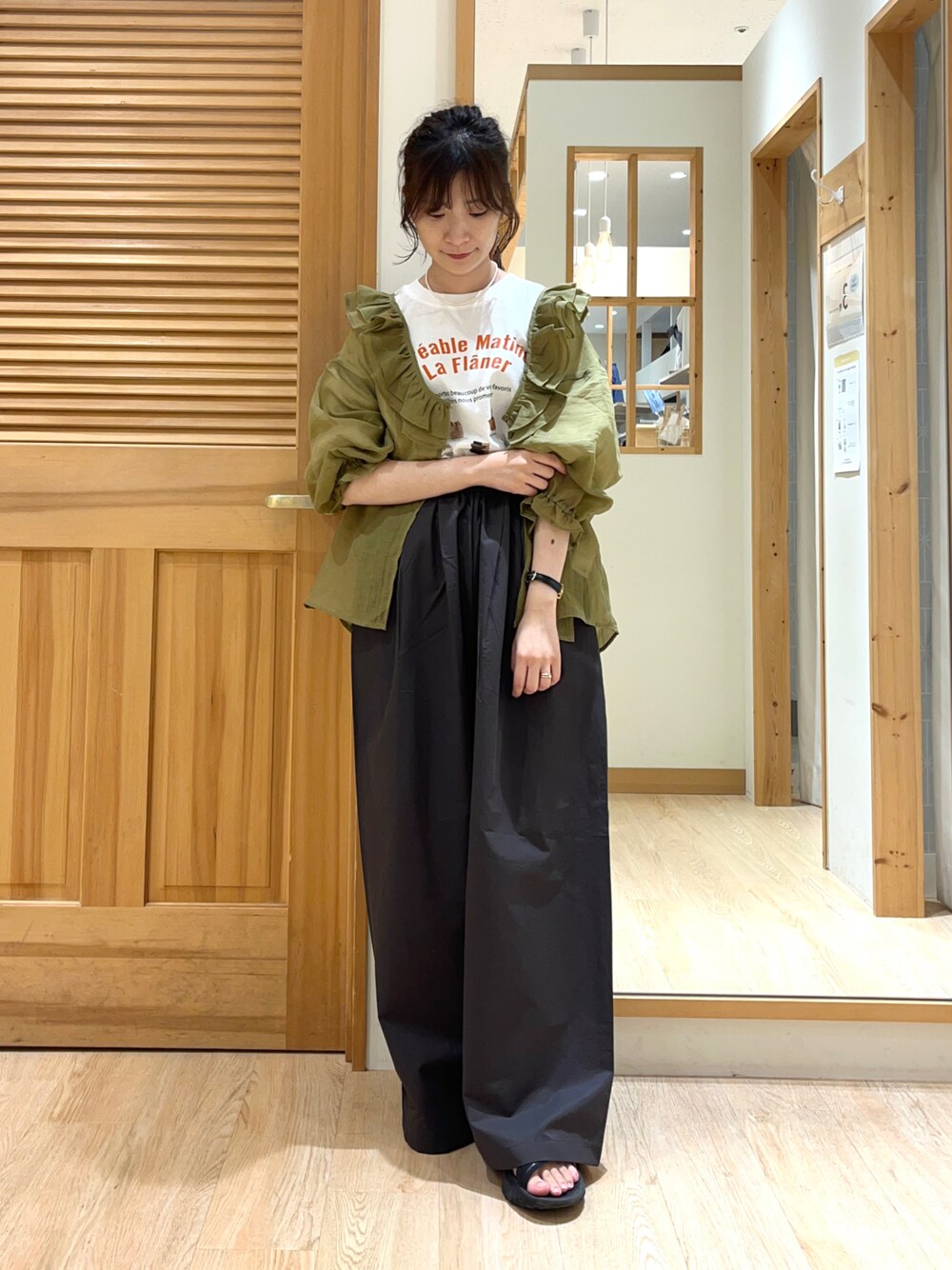 みやもとなのこのその他パンツ「ドローコードデザインワイドパンツ」を使ったコーディネート