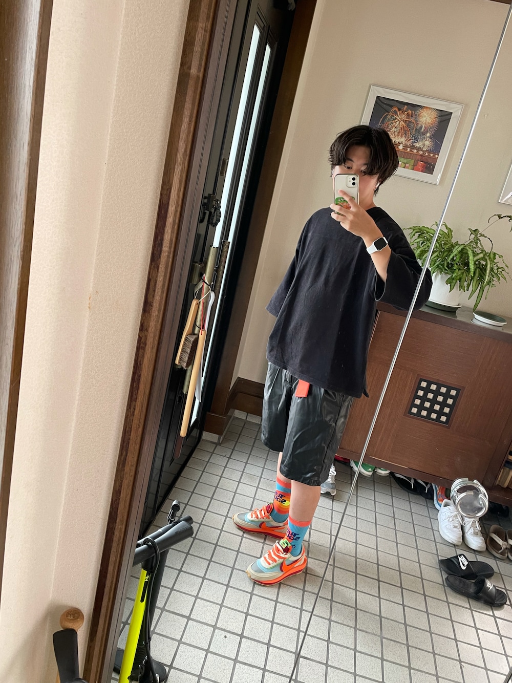 本日もNIKE×sacai×clotのスニーカー モノトーンにして、靴下と靴を主役に 夏が終わりそうなので頑張ってハーフパンツをいっぱい履いていきたい感じ