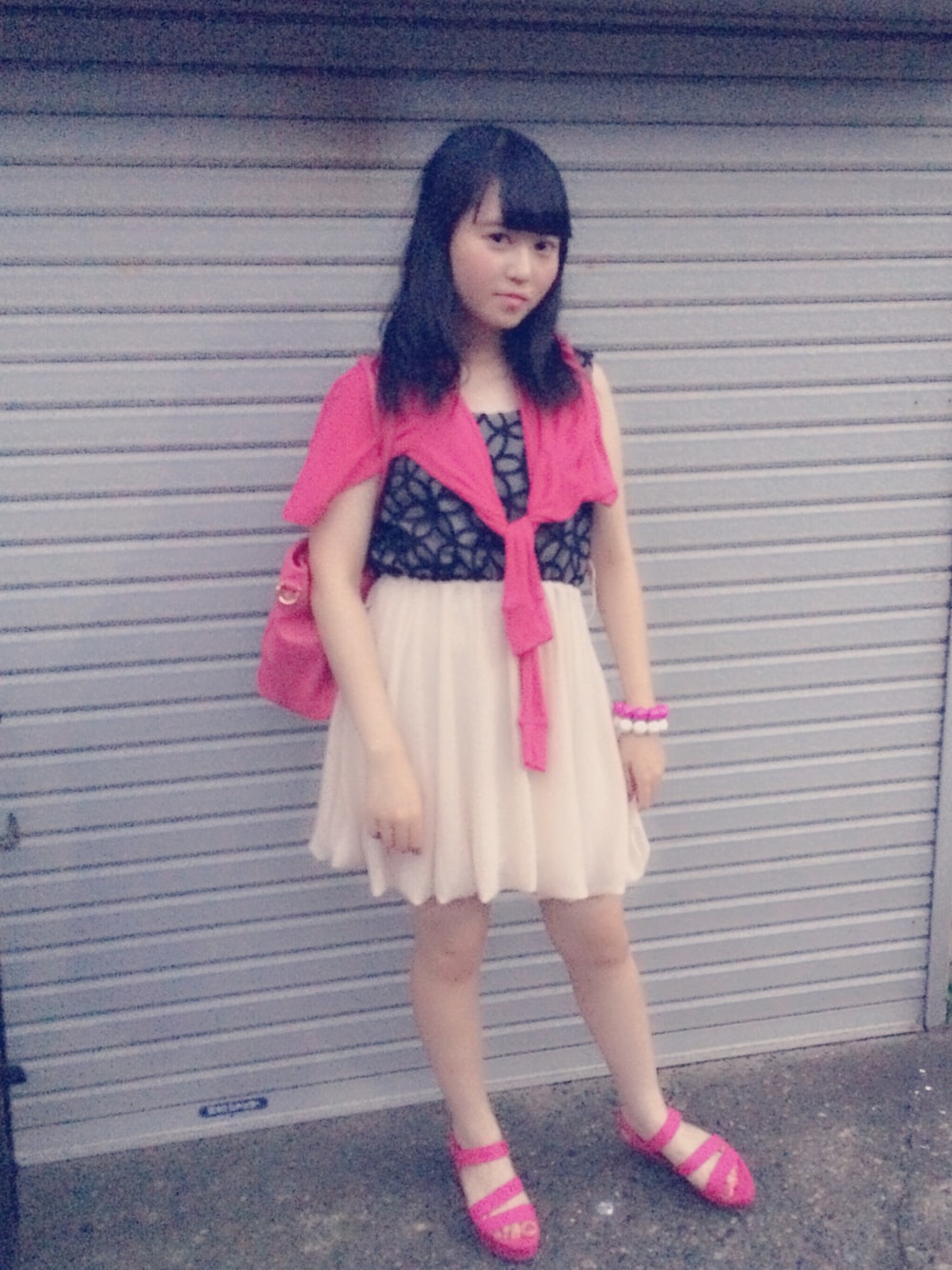 こんばんは🌙 今日は大人っぽいワンピースに アクセントでピンクを入れてみました ネイルとマスカラも ピンクで統一しました💟