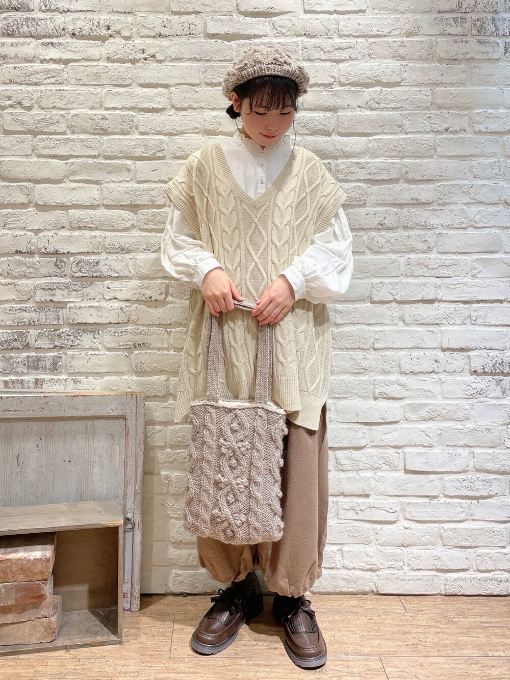 ながやのハンチング/ベレー帽「ぽこぽこニットベレー帽」を使ったコーディネート
