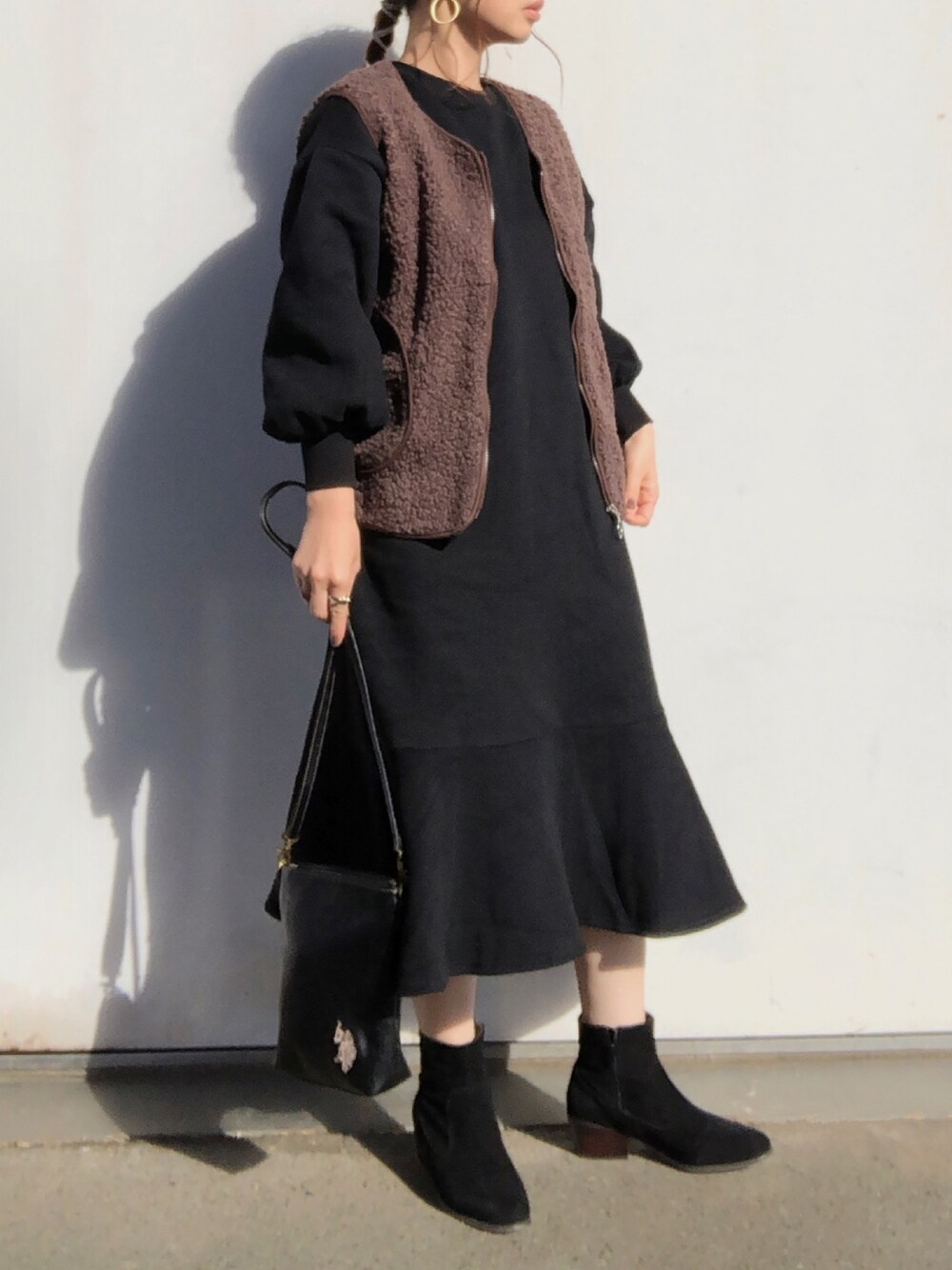 ご覧いただきありがとうございます𓆸 𓇬 MIIAさん 【ZOZO限定】裏起毛マーメイドロングワンピース⋆* 裏起毛でとってもあったか𓈒𓏸 裾のフリルデザインがふんわりかわいい⸝⸝⸝ スウェットで楽ちんなのにきれいめに着こなせます☺︎ MIIAさん本日1500円クーポン出てます* 𓇬 ECRIREさん リラックスボアベスト⋆* ボア×パイピングがかわいい存在感のあるベスト𖥧𖤣 さっと羽織れてコーデのポイントになります✧ 濃いめのブラウンがコーデに馴染んで使いやすい☺︎ いつも♡、+、フォロー フォルダinありがとうございます*゚