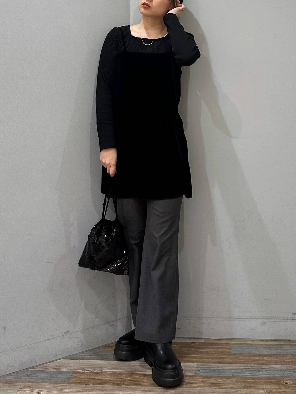 « トップス » タイトめなトップスです! 首元がスクエアに空いているので、すっきりきれいめに着られる! ネックレスとの相性◎ 骨格ストレートの方におすすめ!! « ワンピース » 上品な光沢感があるベロアとサテン地にレースのついたキャミチュニック! すっきりとしたシルエットで骨格ストレートにはおすすめ!! 大人っぽく仕上がる1枚!!! « ボトムス » トレンドのスカートとパンツがセットになったアイテム! スカートはドロストデザインを施すことで今年らしく! パンツはフレアで割とぴったりめ。 « シューズ » ボリュームがあって今年も流行りそう!! 韓国ファッションが流行り始めている今大人気!! ヒールがあるから足が長く、細く見える! 去年のものより、柔らかくて軽い! « バッグ » スパンコールが高級感!! 小さいけど、意外と入る。 シンプルなコーデの日にバックでアクセント!
