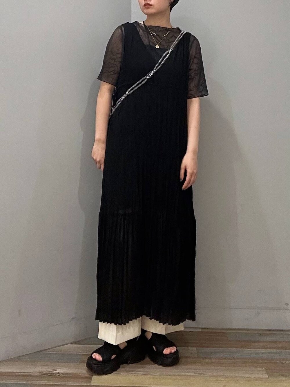 « トップス » 透け感がちょうどいいシアーのトップスです! 1枚のトップスとして着ても◎ ワンピースやベストなどのインナーとして着ても◎ シンプルで使いやすい! « ワンピース » 去年大人気だったシアー素材のワンピース! 裾に透け感があり、今年はデニムなどとレイヤードして履いていただくのがオススメ!! 胸元がV字になっているため、骨格ストレートさんにお勧め!! « シューズ » ナイキのスポーツサンダルのようなデザインですが、ローリーズファームオリジナルのこだわりが施してあるめちゃめちゃ履きやすいサンダルです! 軽くて靴擦れしにくく、お手頃価格なのも嬉しいですよね! « バッグ » ビーズ網のアクセバック! ケータイが入るくらいの大きさ コーデのアクセントになってかわいい! こちらでもコーデ載せてます✨