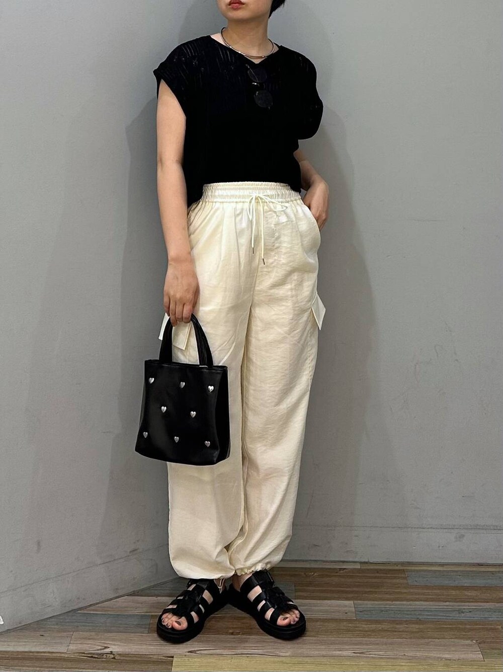 « トップス » ゆとり之あるノースリーブトップス! 透かし柄ニットがカジュアルで、大人っぽくサラッと着られます! 肩周りが隠れるので、ノースリーブが苦手な方でも安心です! « ボトムス » ワイドパンツにもなるカーゴパンツ! その日のお洋服の雰囲気に合わせてドロストで調整して頂けます!! 柔らかい素材で、お休みの日にラフな格好でいたいときにもつかいたいアイテムです!! « シューズ » L カジュアルサンダル! スライドタイプで脱ぎ履きが楽! ヒールはなく1日はいてい手も足の疲れ軽減! ローリーズファーム定番のおすすめアイテムです! « バッグ » 手持ちにも、ショルダーバックにもなる!! シルバーの飾り付き。 シンプルなコーデにこのバックをプラスしてポイントに!